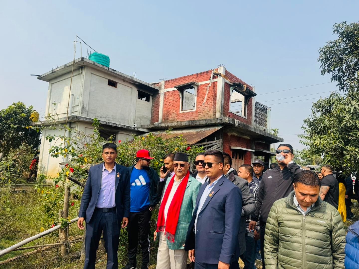 काठमाडौं फर्किने क्रममा अध्यक्ष ओली जलेको घर हेर्न श्रीमति राधिका शाक्यसहित हिमाली पुग्नु भएको थियो । घर जलेपछि पहिलो पटक उहाँ हिमाली पुग्नुभएको हो ।