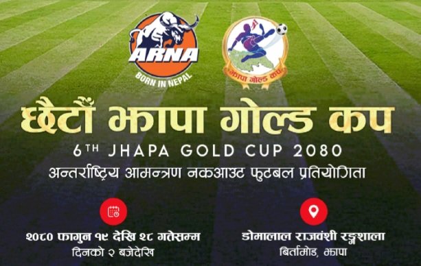 झापा, १९ फागुन । जिल्लाको गौरव मानिएको ‘झापा गोल्डकप’को छैठौं संस्करण आज सुरु हुँदैछ ।बिर्तामोड–३ स्थित डोमालाल राजवंशी रंगशालामा आज गोल्डकपको सभामुख देवराज घिमिरेले उद्घाटन गर्ने कार्यक्रम रहेको छ ।