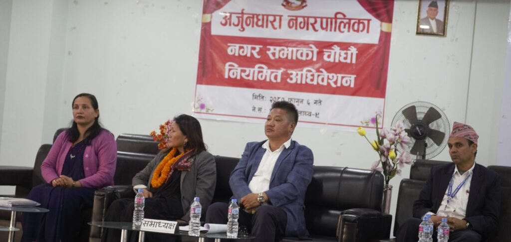 अर्जुनधारा नगरपालिकाको नगरसभा सम्पन्न भएको छ। आज आइतबार नगरपालिकामा २०८०।८१ को नगर बजेटको लागि नगरसभा सम्पन्न भएको हो। नेपालका उपसभामुख इन्दिरा राना मगरको प्रमुख अतिथ्यमा १४औं अधिवेशन तथा नगरसभा सम्पन्न भएको हो। अर्जुनधारा नगरपालिकाका नगरप्रमुख बलदेव गोम्देन को सभापतित्वमा नगरसभा आयोजना भएको हो। अर्जुनधारा नगरका उपप्रमुख खड्ग माया पराजुलीले ७६ करोड २२ लाख रुपैयाँको आयव्ययको अनुमान गरी बजेट स्वीकृति गरिएको जानकारी गराउनुभएको थियो। नेपाल सरकारबाट निशर्त कार्यक्रम बापत रु २८ करोड ३० लाख वित्तीय हस्तान्तरणबाट ५१ लाख विशेष अनुदानबाट १ करोड ४५ लाख सर्सत अनुदानबाट ९० लाख राजस्व बाँडफाँडबापत १२ करोड २० लाख अनुमान गरिएको नगरसभामा पढेर सुनाउनुभएको थियो।