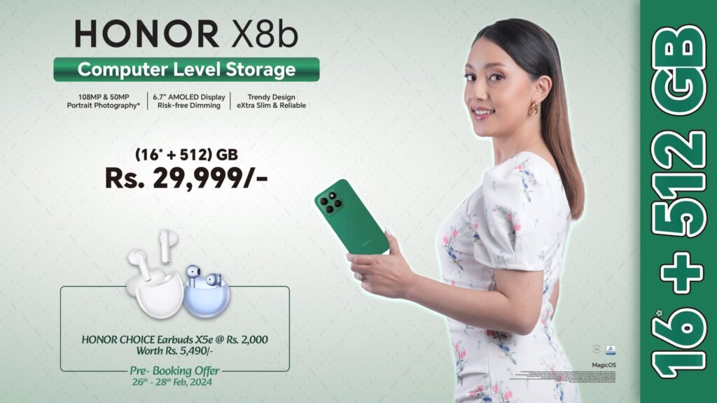 त्यहाँ लञ्च गरिने नयाँ सिरिजका मोबाइलहरूमध्ये एस्क सिरिजको मोबाइल ‘होनोर एक्स८बी’लाई चाँडै नै नेपाली बजारमा भित्र्याउने कम्पनीले जनाएको छ । जुन ५१२ जीबी स्टोरेजको छ भने कम्पनीले ‘कम्प्युटर लेभल स्टोरेज’ ट्याग लगाइदिएको छ । बुकिङका लागि कम्पनीले तीन दिन अर्थात् फेब्रुअरी २८ सम्मको समयसीमा तोकेको छ ।