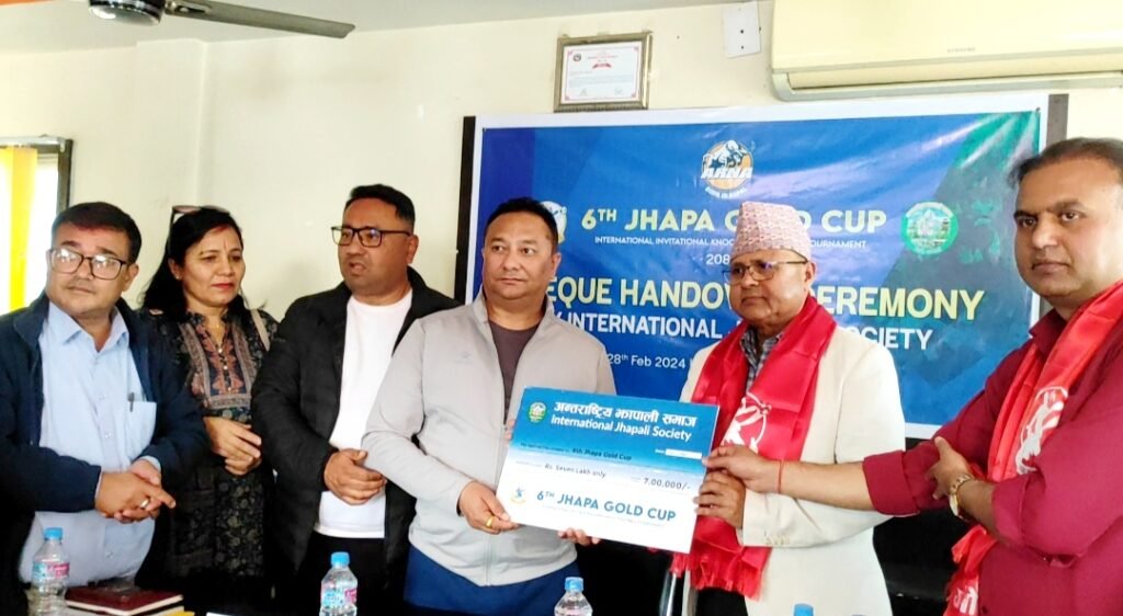 अन्तर्राष्ट्रिय झापाली समाजका अध्यक्ष मुकुन्द ढुंगाना र महासचिव नवीन पोखरेलले गोल्ड कपका अध्यक्ष बिनोद बस्नेत र महासचिव गजेन्द्रबहादुर पौडेललाई चेक हस्तान्तरण गरेका हुन् ।