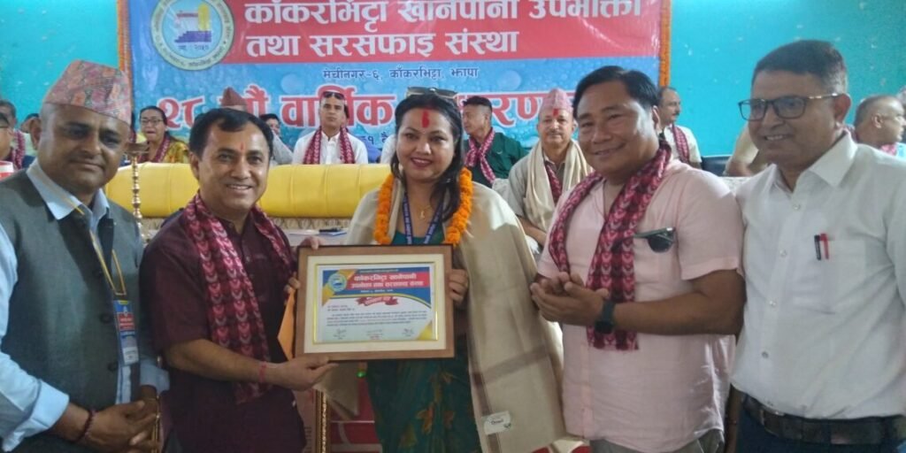 काँकरभिट्टा खानेपानी उपभोक्ता तथा सरसफाइ संस्थाकाे २८ औँ वार्षिक साधारणसभामा संविधान सभा सदस्य रविन काेइराला, मेचीनगर नगरपालिकका पूर्व मेयर विमल आचार्य र वर्ष उत्कृष्ट कर्मचारीका रूपमा सुस्मिता भट्टराई सम्मानित भएका छन् ।