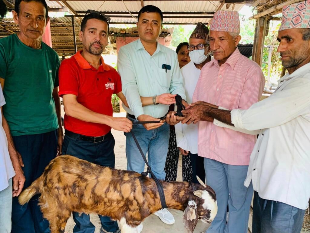 सहारा नेपाल साकोसले नश्ल सुधार सहितको विउ बोकाहरु कृषकहरुलाइ निशुल्क वितरण गरेकोछ ।