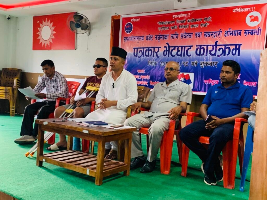 पत्रकार सम्मेलनमा युवा सघं झापाका इन्चार्ज समेत रहेका राज आगंदेम्वेले स्थानीय सरकारको बजेट, नीति तथा कार्यक्रम निर्माण स्थानीय स्तरमा सल्लाह सूझाव संकलन गरेर गर्न पालिकाहरुलाई आग्रह गरिने बताउनुभयो । गाउँमा बनाउनुपर्ने कार्यक्रम तारे होटलमा बसेर बनाउदा सबै वर्ग, क्षेत्र उपेक्षामा परेको उनको आरोप छ ।