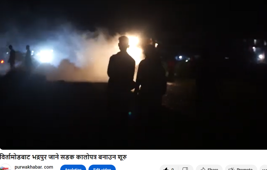 ५१ करोडको लागतमा ठेक्का लगाएको ८ किलोमिटर लामो यो सडक बुधवार रातीबाट कालोपत्र गर्न शूरु गरिएको ठेकेदार कम्पनीले बताएको हो