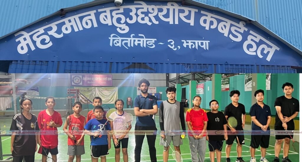झापाको बिर्तामोडमा पहिलोपटक मेहरमान बहुउद्देश्यीय कभर्ड हलमा ब्याडमिन्टनको प्रशिक्षण सुरु भएको छ ।