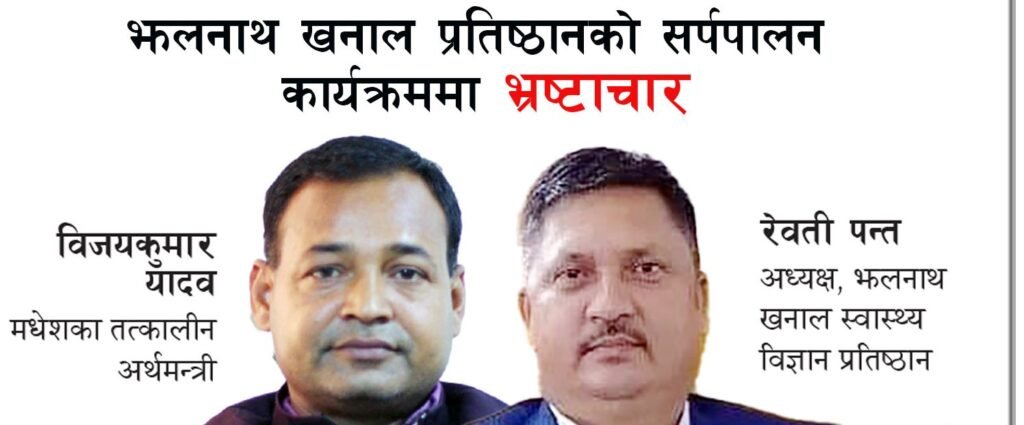 सर्लाहीको लालबन्दीस्थित झलनाथ खनाल स्वास्थ्य विज्ञान प्रतिष्ठानको सर्पपालन कार्यक्रममा १७ करोड ९८ लाख ३३ हजार रुपैयाँ भ्रष्टाचार भएको छ । विशेष अदालतले मधेश प्रदेशका तत्कालीन आर्थिक मामिलामन्त्री विजयकुमार यादव, प्रतिष्ठानका अध्यक्ष रेवती पन्तसहितका पदाधिकारी गरी पाँचजनालाई दोषी ठहर गरेको छ ।