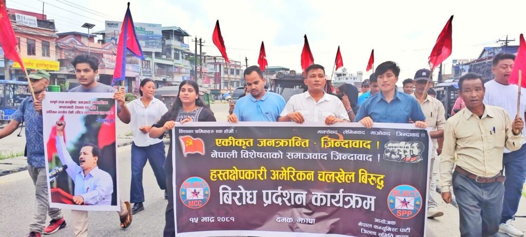झापा । हस्तक्षेपकारी अमेरिकन चलखेल विरुद्ध विप्लव नेतृत्वको नेपाल कम्युनिस्ट पार्टी झापाले वृहत् विरोध प्रदर्शन गरेको छ।