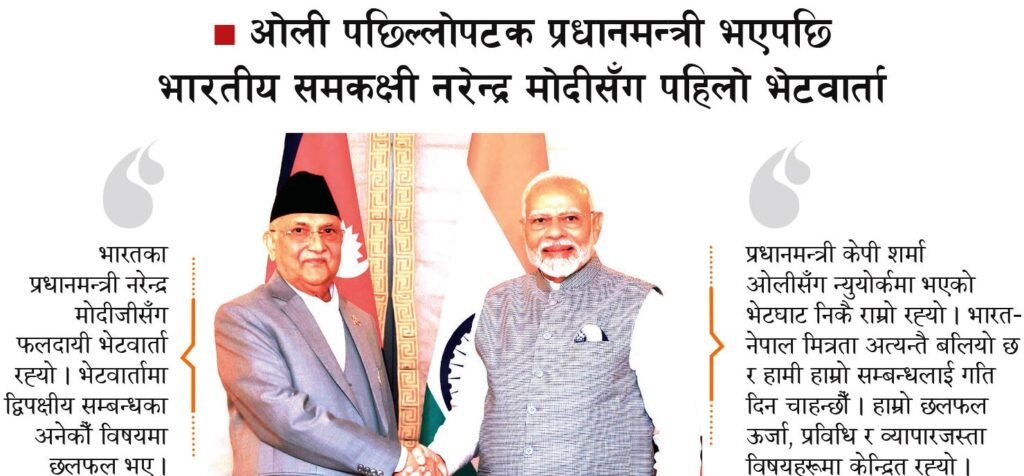 न्युयोर्कमा प्रधानमन्त्री ओली–मोदी भेट : ऊर्जा, प्रविधि र व्यापारबारे छलफल