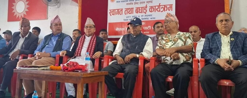 जिल्ला पार्टी कार्यालयमा मन्त्री दाहाललाई बधाई ज्ञापन गर्न आज बिहान आयोजित कार्यक्रममा नेकपा एमाले झापाका अध्यक्ष प्रेम गिरीले झापा जिल्लाको बहुआयामिक महत्व दर्शाउँदै स्मरणपत्र बुझाएका हुन् ।