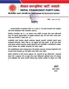 नेकपा एमाले बिर्तामोडद्वारा वडाध्यक्ष कार्कीमाथि अनुशासन कारबाहीको माग